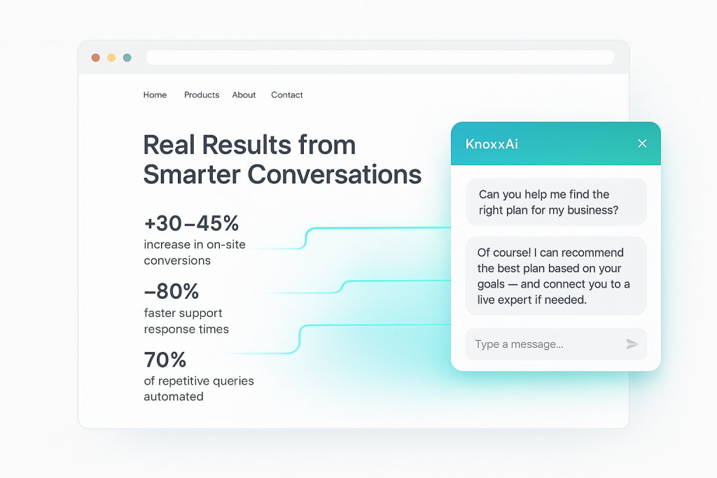 Whether you run an e-commerce store, event site, or travel platform, KnoxxAi’s Web Bot helps you engage, convert, and retain customers effortlessly.