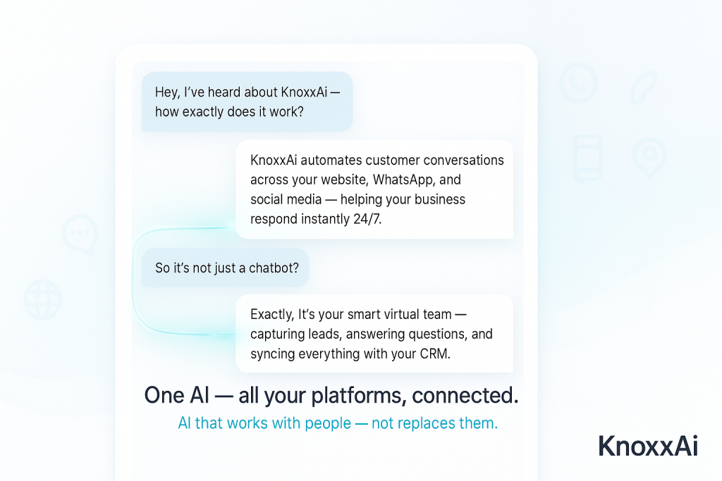 Your website is your most valuable digital asset — and KnoxxAi’s Web Bot ensures every visitor gets instant support. Integrated directly into your site, it automates FAQs, captures leads, and guides visitors toward conversion, all while maintaining your brand’s tone and personality.