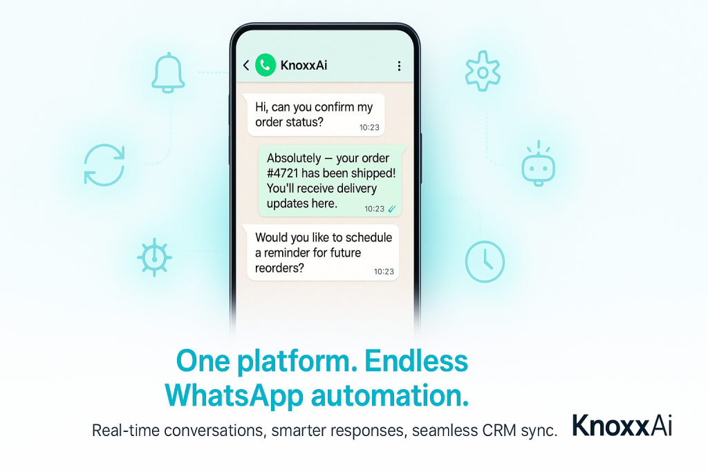 KnoxxAi integrates seamlessly with WhatsApp to deliver personalised conversations, instant responses, and lead generation that drives real business growth.